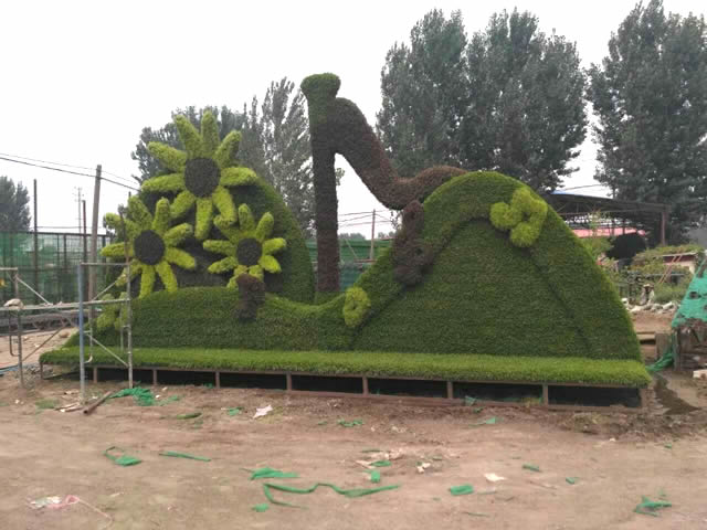 我們公司打造出來(lái)的仿真植物園林綠雕做到了以假亂真,無(wú)論近觀遠(yuǎn)視都難以辨真假;外形牢固,仿真綠雕,仿真植物抗老化特性強(qiáng)。我們帶領(lǐng)一支優(yōu)秀的設(shè)計(jì)團(tuán)隊(duì),卡通動(dòng)物仿真綠雕,堅(jiān)持以市場(chǎng)信息為依據(jù),認(rèn)真考慮顧客意見(jiàn),為客戶(hù)打造稱(chēng)心如意的園林綠雕。綠雕制作-綠雕景觀 1、綠雕骨架結(jié)構(gòu)制作:綠雕骨架的材料一般可以有鋼筋、鐵絲、角鐵、不銹鋼等等,一般根據(jù)綠雕大小和形狀選擇制作骨架的材料,在材料上的選擇,首要的就是綠雕骨架牢固度。綠雕牢固都能擺放長(zhǎng)久,不會(huì)出現(xiàn)意外事故。一般在大型綠雕制作過(guò)程中,通常會(huì)采用角鐵、鋼筋、鐵絲這些柔韌性,受力強(qiáng)的材料。小型綠雕在制作過(guò)程就可選擇鋁絲材料,優(yōu)點(diǎn)是比彈性小,不容易晃動(dòng),缺點(diǎn)是承重力有限。 2、綠雕基質(zhì)栽培:在綠雕骨架制作完成后,將遮罩網(wǎng)作為外框架的表面,遮罩網(wǎng)材質(zhì)一般使用遮陽(yáng)網(wǎng),將遮陽(yáng)網(wǎng)從下往上縫制并裝訂牢固。遮陽(yáng)網(wǎng)上填充栽培基質(zhì),以粘土和蛭石為主,適當(dāng)直譯滌棉、草悄、農(nóng)肥等材料,保證植物栽植后的水肥,還增加拉力。 3、綠雕材料的選材:要求枝葉細(xì)小、植株緊密,可以用生長(zhǎng)緩慢的多年生植物為主,如金邊過(guò)路黃、半柱花和矮麥冬等,傳統(tǒng)綠雕主要材料以五色草為主。因?yàn)槲迳葜仓臧。种α?qiáng),枝繁葉密,耐修剪,葉色多變,色澤鮮艷,喜溫畏寒耐干熱忌低溫,植株矮小的還可選用如四季海棠、孔雀草等,它們?cè)诤迟|(zhì)的肥沃沙壤或壤土上生長(zhǎng)良好。為了豐富色彩可搭配:金葉景天、佛甲草、彩葉草、四季海棠、仙人球、小葉紅草、玫紅色的玫紅草、銀灰色的芙蓉菊等。植物材料應(yīng)采用穴盤(pán)苗,因其根部較小易于栽植,栽后緩苗期短。 ![]()